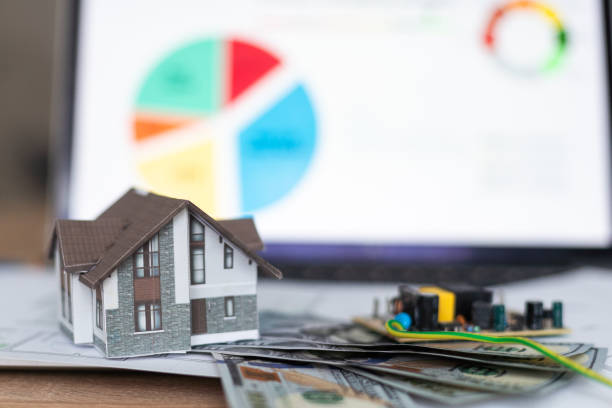 Model house on top of money pile suggesting savings for a house. High quality photo