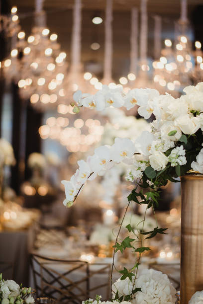 Wedding reception decor for dinner tables with orchid flowers